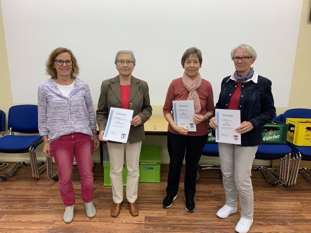 Bärbel Guschewski (1. Vorsitzende) mit Ursula Heinrich, Hauptstraße für 65 Jahre, Ingrid Mewes und Rita Heinzel
